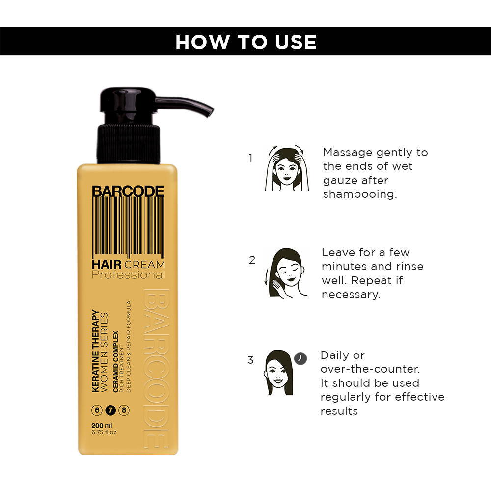 Apply it to the wet hair ends after the shampooing with a slight massage. Allow it for a few minutes and rinse with abundant water. Repeat if needed. It can be used daily or every other day. It should be used regularly in order to obtain an effective result.